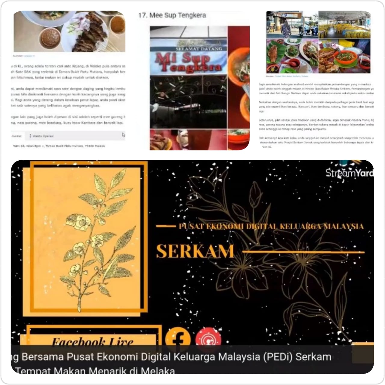 Pengisian ini memberi sedikit perkongsian kepada pengikut Facebook Page Pusat Ekonomi Digital – PEDi Serkam akan tempat yang makan menarik yang ada di Negeri Melaka.